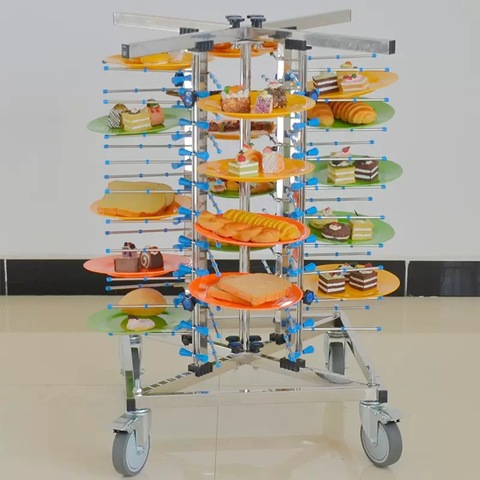 ชั้นวางจานสแตนเลสแบบเคลื่อนที่ได้80จานสำหรับใช้ในโรงแรมและร้านอาหาร